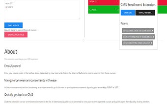 The CMS Enrollment extension is a free add-on for Chrome that simplifies the process of enrolling in courses on CMS (Course Management System). Developed by Akshat, this extension aims to enhance your CMS experience by streamlining the enrollment process.